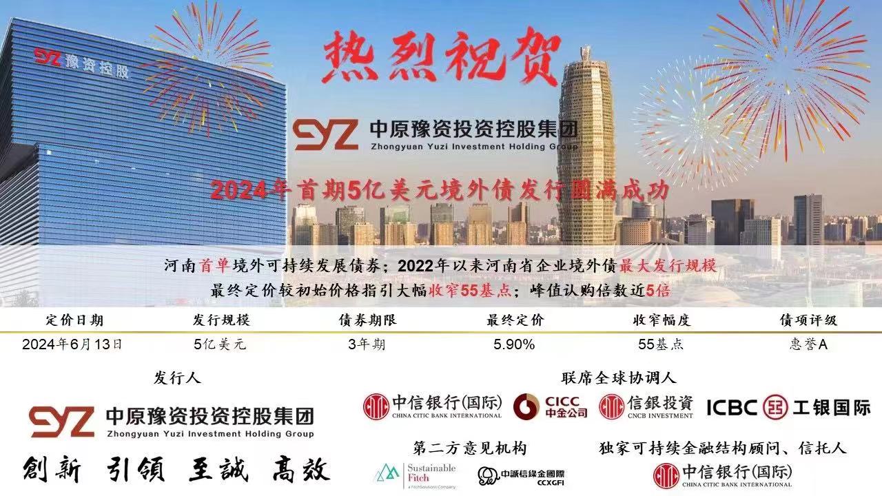喜報!熱烈祝賀中原豫資投資控股集團2024年首期5億美元境外債發行圓滿成功